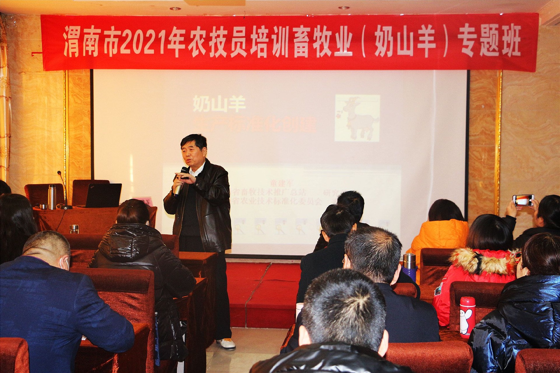 2021年12月1日,渭南市农业广播学校在华州区举办“渭南市2021年农技员培训畜牧业(奶山羊)专题班”。陕西省畜牧业协会羊业分会专家组组长、陕西省肉羊产业技术体系首席专家、陕西省畜牧技术推广总站副站长童建军研究员应邀为培训班授课。